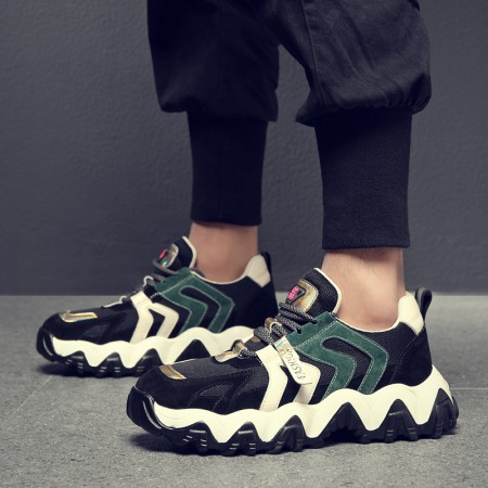 Men's Sport Gym Running Shoes Walking Shoes Casual Lace Up Lightweight Black-Green