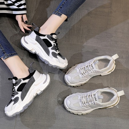 Women's Autumn New Casual Sports Shoes Mesh Breathable Thick Sole Height-Increasing Shoes Summer Trendy Sneakers